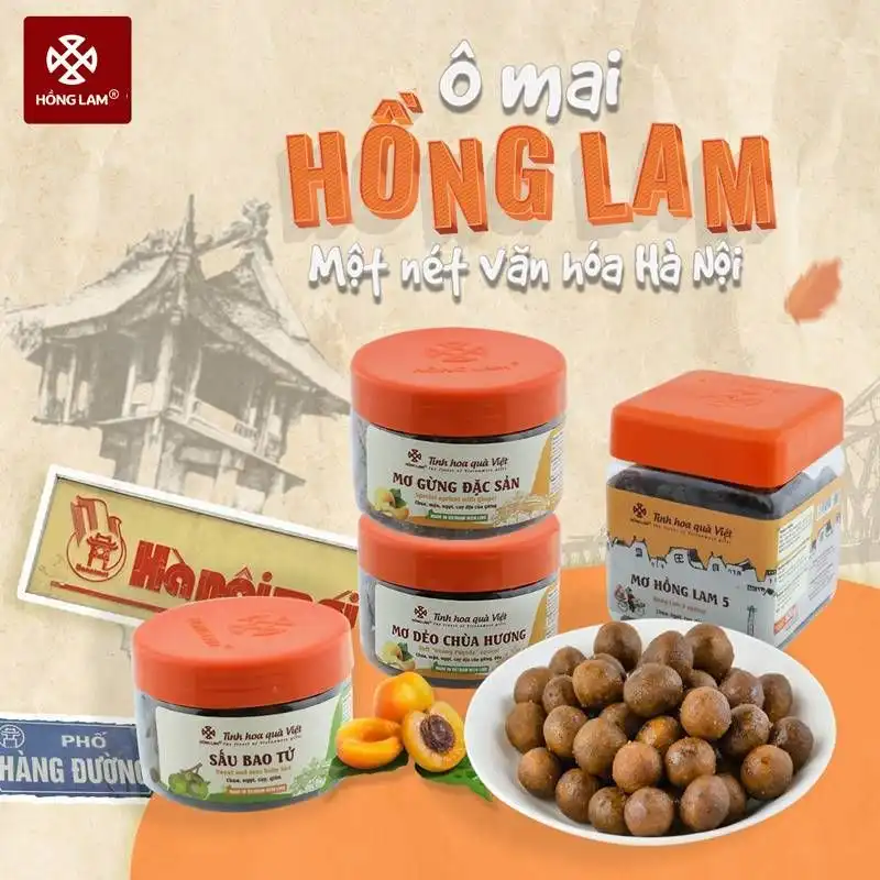 Nhắc đến Ô mai không thể bỏ qua Ô mai Hồng Lam – thương hiệu uy tín có mặt gần 30 năm trên thị trường cùng với hệ thống cửa hàng trên toàn quốc. Ô mai Hồng Lam là sự kết hợp hoàn hảo giữa hương vị truyền thống cùng công nghệ hiện đại dưới bàn tay của những nghệ nhân thời đại mới tạo nên những hộp ô mai chuẩn vị truyền thống, đồng đều về chất lượng nhưng vẫn đảm bảo vệ sinh an toàn thực phẩm.